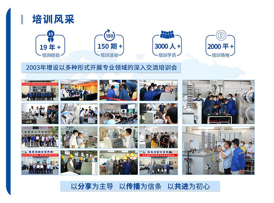 基地?fù)碛卸鄠€(gè)多媒體培訓(xùn)教室和有著省重實(shí)驗(yàn)室支撐的實(shí)操實(shí)驗(yàn)室。專業(yè)理論培訓(xùn)師9人,實(shí)際操作培訓(xùn)師8人,能夠?qū)Υ笮碗娏ψ儔浩?、GIS、開關(guān)柜、電纜、敞開式設(shè)備等各類高壓設(shè)備進(jìn)行專業(yè)的帶電檢測(cè)培訓(xùn),可開展超聲波局部放電檢測(cè)等十余項(xiàng)實(shí)訓(xùn)項(xiàng)目,歡迎有需要的各界人士前來(lái)參加。