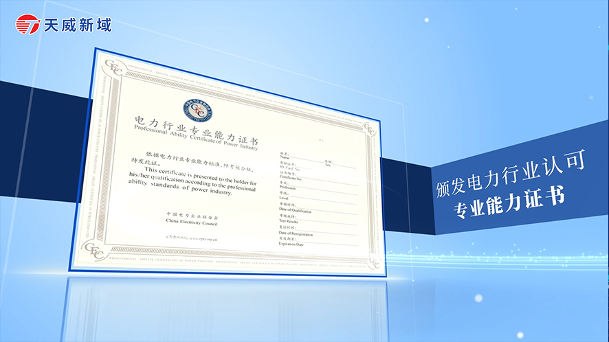 2021年9月經(jīng)中國(guó)電力企業(yè)聯(lián)合會(huì)認(rèn)證,天威新域建成電力行業(yè)變電站帶電檢測(cè)人員評(píng)價(jià)基地。在我司接受培訓(xùn)學(xué)員,經(jīng)過考核,成績(jī)合格者,頒發(fā)電力行業(yè)認(rèn)可專業(yè)能力證書。