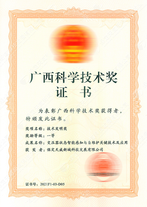 保定天威新域科技發(fā)展有限公司與廣西大學共同研發(fā)的“變壓器狀態(tài)智能感知與自維護關(guān)鍵技術(shù)及應用”獲得廣西科學技術(shù)發(fā)明一等獎。