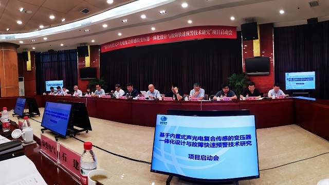 由中國電力科學研究院牽頭,聯(lián)合國網(wǎng)河北省電力有限公司、國網(wǎng)北京市電力公司、保定天威新域科技發(fā)展有限公司、清華大學深圳國際研究生院承擔的國網(wǎng)總部重點科技項目"基于內(nèi)置式聲光電復(fù)合傳感的變壓器一體化設(shè)計與故障快速預(yù)警技術(shù)研究",旨在構(gòu)建大型電力變壓器內(nèi)部故障分析模型,建立復(fù)雜絕緣結(jié)構(gòu)在絕緣油環(huán)境中放電強度及危害性的發(fā)展規(guī)律,異常狀態(tài)下聲、光、電信號的三維空間傳播特性與傳感方法。解決大型電力變壓器內(nèi)部絕緣故障快速診斷、主動預(yù)警和有效防御問題。項目研發(fā)期三年,總投資約1500萬。2025年6月10日在國網(wǎng)河北省電力公司召開了項目啟動會。